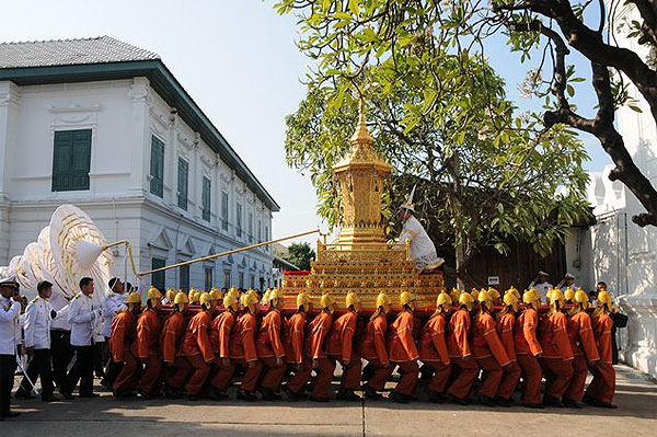 The golden urn is transferred to the royal chariot. APICHART JINAKUL