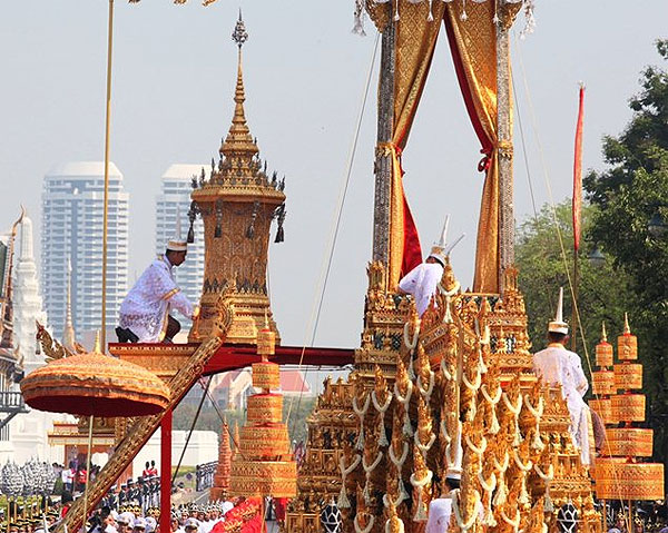 The magnificent royal chariot which carried the urn from Wat Pho to Sanam Luang was built in 1795 during the reign of King Rama I. It has transported the royal urns of five Chakri kings (from King Rama I to King Rama V) as well as high-ranking members of the royal family, most recently HRH The Princess Mother in 1996 and HRH Princess Galyani Vadhana in 2009.