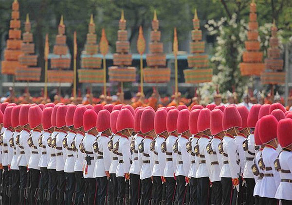 The day began at 7am with the first procession, which carried the royal urn from Dusit Maha Prasat Throne Hall to the front of Wat Phra Chetupon, or Wat Pho, atop the royal golden palanquin. There, the urn was transferred to the royal chariot.